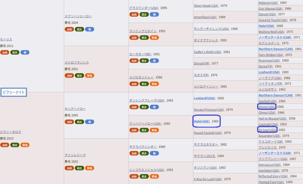 あとピクシーナイトは母父キングヘイローがヘイロー≒ドローン≒サーアイヴァーですし。