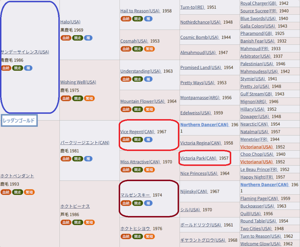 見ての通りだけど、サンデーサイレンスにヴァイスリージェントにヴィクトリアパークにマルゼンスキーですからね。