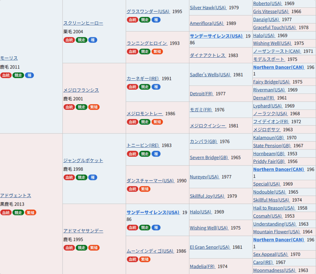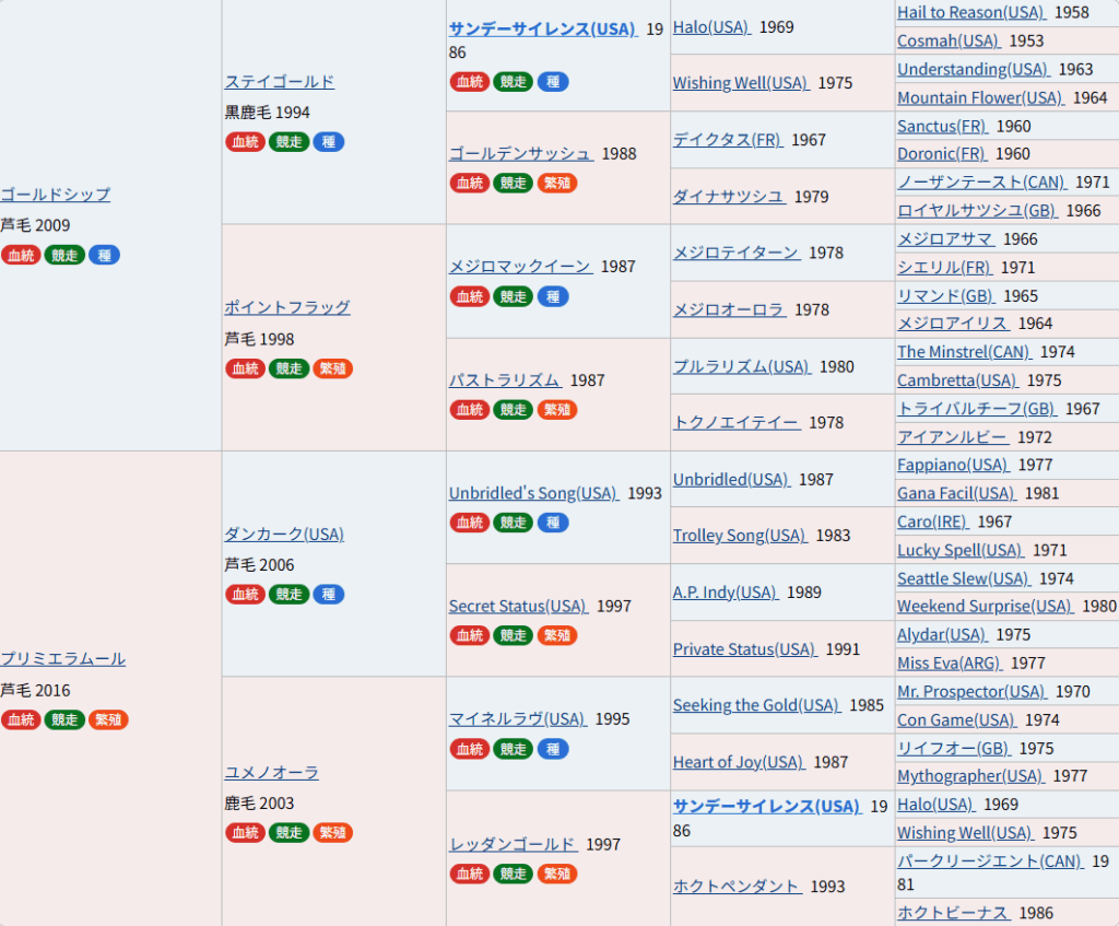 ※血統表は基本的に全てJBISさんhttps://www.jbis.or.jp/のものを加工しています。